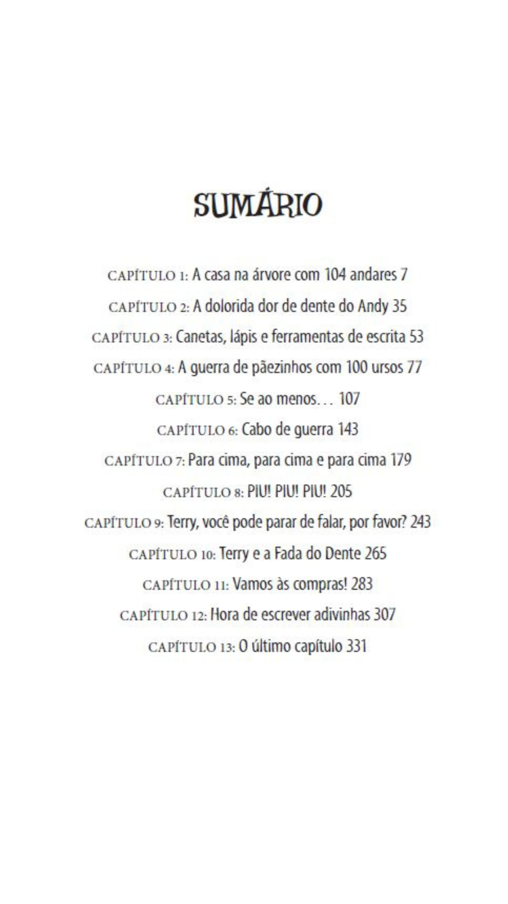 A Casa na Árvore acompanha Andy e Terry, dois amigos super criativos e cheios de imaginação. Em cada volume, a casa onde eles moram ganha 13 andares completamente novos — com invenções malucas, criaturas esquisitas e situações hilárias. A curiosidade de descobrir o que vem a seguir deixa os pequenos leitores grudados do início ao fim.
