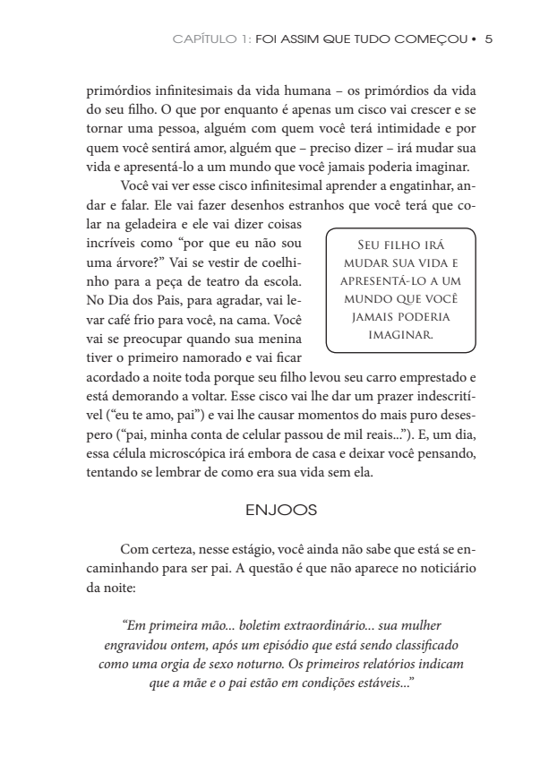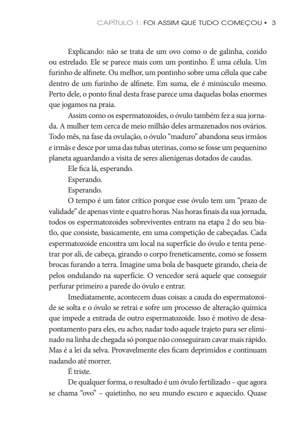 De modo divertido, irônico e bastante direto, este best-seller está repleto de conselhos práticos e úteis sobre a gravidez, o parto e os cuidados com o bebê. O livro ainda traz um glossário com termos que você precisa conhecer e outros que você não precisa, uma lista de filmes recomendados e comentários de quem passou pela experiência e tem muita sabedoria para compartilhar.