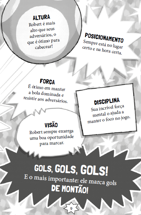 Com ilustrações bem-humoradas, textos curtos e linguagem simples, o livro prende a atenção desde a primeira página. A combinação entre futebol e diversão transforma a leitura em uma experiência prazerosa, perfeita para desenvolver o hábito de ler desde cedo.