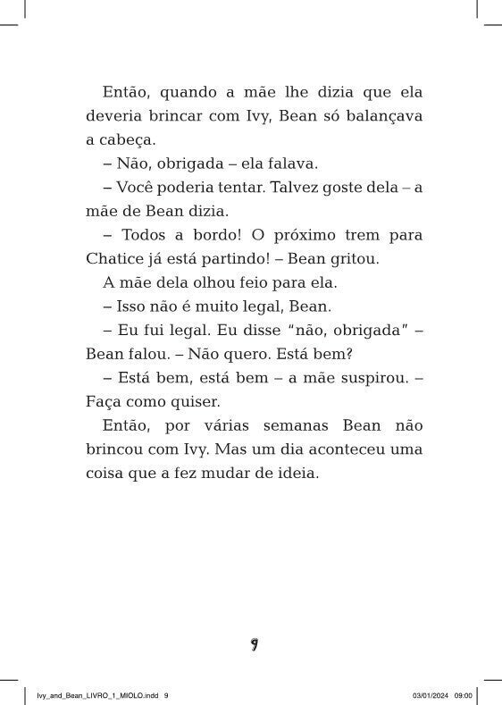 A série Ivy + Bean segue as aventuras de duas meninas que não poderiam ser mais diferentes. Ivy, com sua imaginação fértil e paixão por feitiços, e Bean, com sua energia indomável e criatividade para travessuras, descobrem que podem ser as melhores amigas. Cada livro da série explora as travessuras encantadoras e os desafios que elas enfrentam, ensinando lições valiosas sobre amizade, compreensão e aceitação das diferenças.
