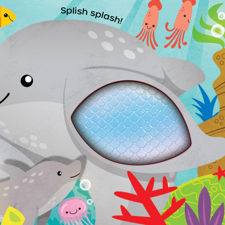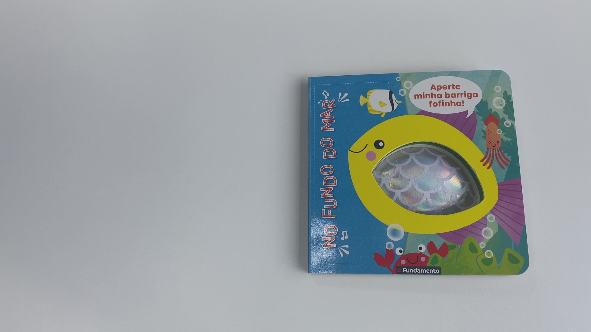 Livro infantil com elementos sensoriais para bebês de 1 a 3 anos, com ilustrações do fundo do mar que despertam a imaginação e o interesse pelos animais marinhos. Perfeito para estimular a percepção visual e o contato com novas descobertas.