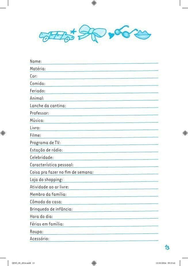 Mas, se você for a privilegiada dona deste diário otário, ou a(s) melhor(es) amiga(s) dela, fique à vontade! Escreva seus segredos, micos, coisas legais e responda perguntas importantes, como...