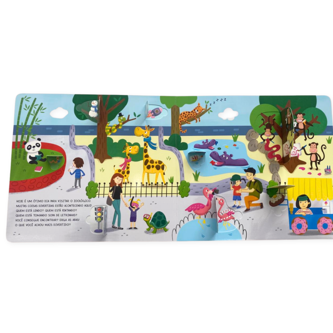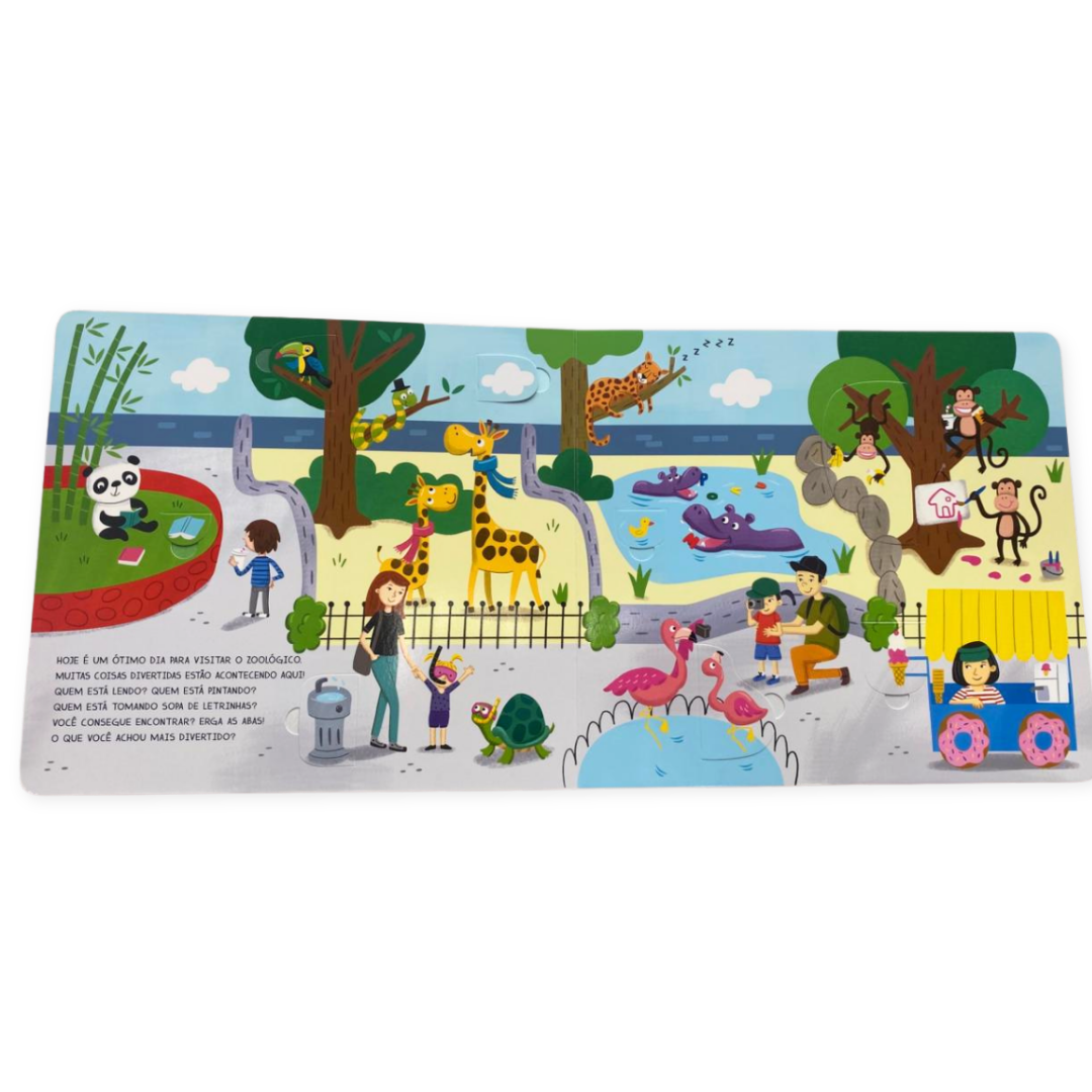 Livro infantil ilustrado que convida a criança a descobrir os animais do zoológico de forma divertida. Estimula a curiosidade, o vocabulário e a observação, ideal para os primeiros contatos com o mundo animal.