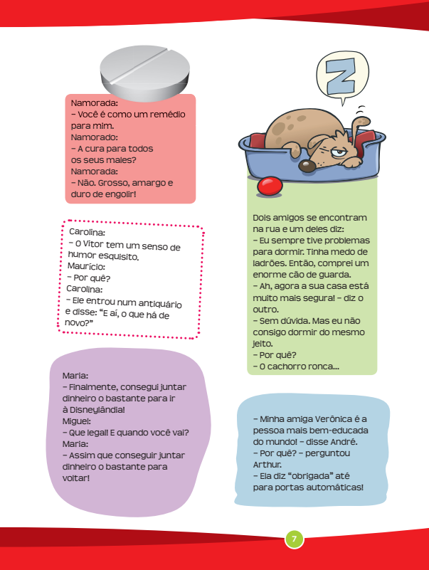 Piadas divididas por temas e escritas com linguagem simples e acessível