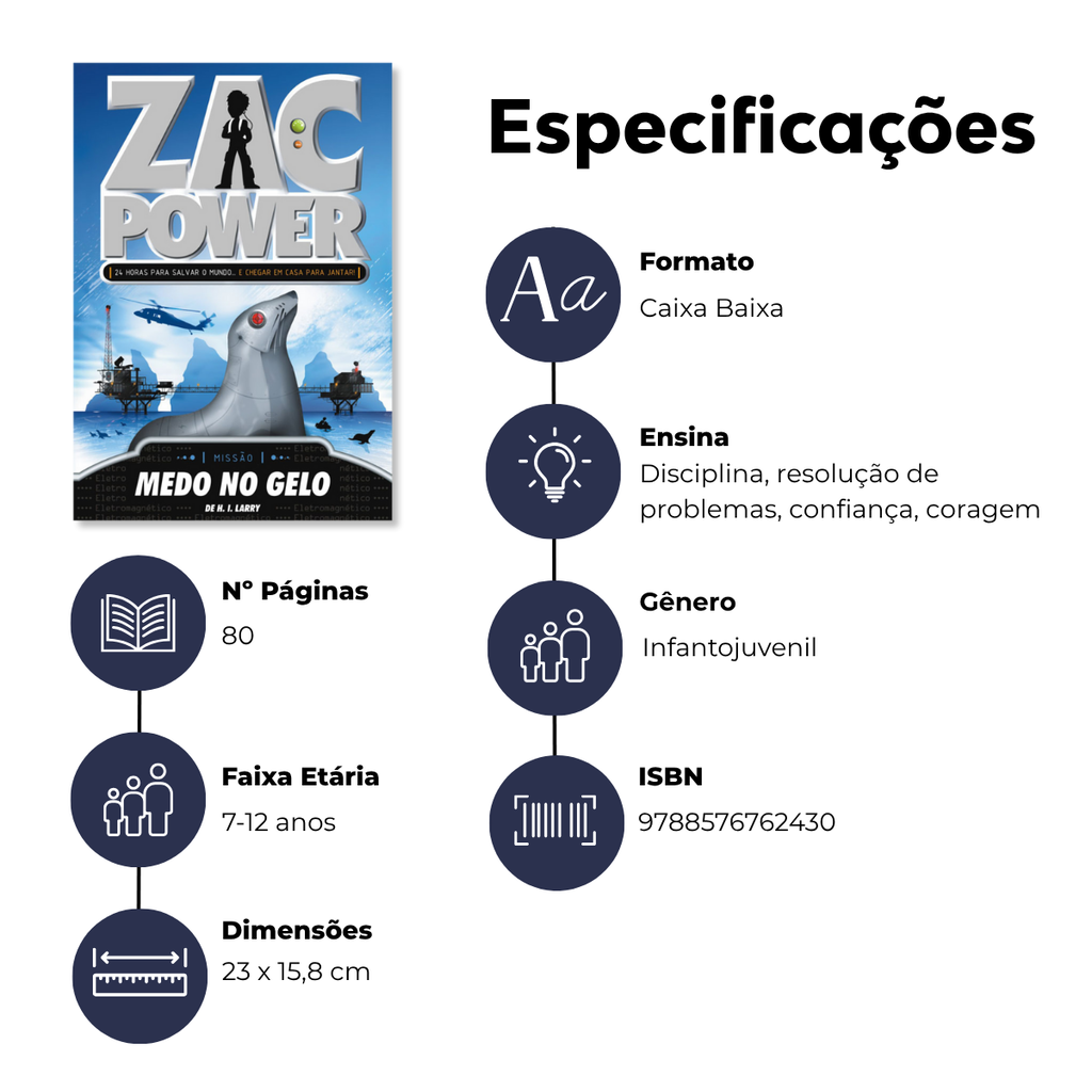Com mais de 3 milhões de livros vendidos, Zac Power é a série perfeita para meninos a partir de 7 anos que adoram ação, mistério e aventura! Uma leitura envolvente que já conquistou crianças no mundo todo — e que promete afastar seu filho das telas, aproximando-o do universo dos livros.
