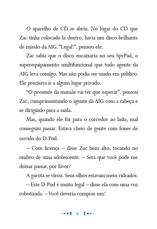 A cada volume, uma nova missão cheia de enigmas, reviravoltas e desafios inesperados prende a atenção dos pequenos leitores do início ao fim. Zac parece um garoto comum, mas guarda um grande segredo: ele é um agente secreto global! Com inteligência e coragem, Zac enfrenta perigos ao redor do mundo, despertando nos leitores o desejo de solucionar cada mistério ao lado dele. Uma maneira divertida e criativa de estimular a leitura e o raciocínio lógico.
