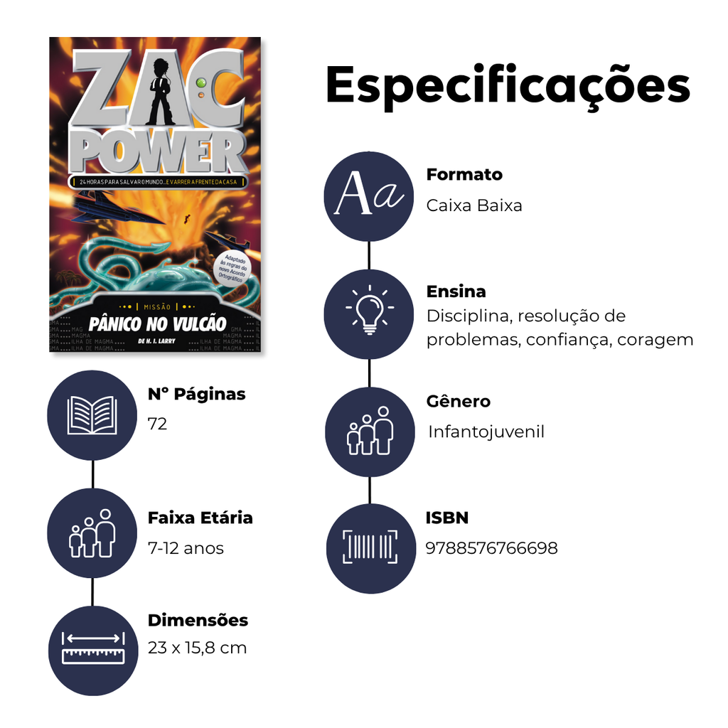 Com mais de 3 milhões de livros vendidos, Zac Power é a série perfeita para meninos a partir de 7 anos que adoram ação, mistério e aventura! Uma leitura envolvente que já conquistou crianças no mundo todo — e que promete afastar seu filho das telas, aproximando-o do universo dos livros.