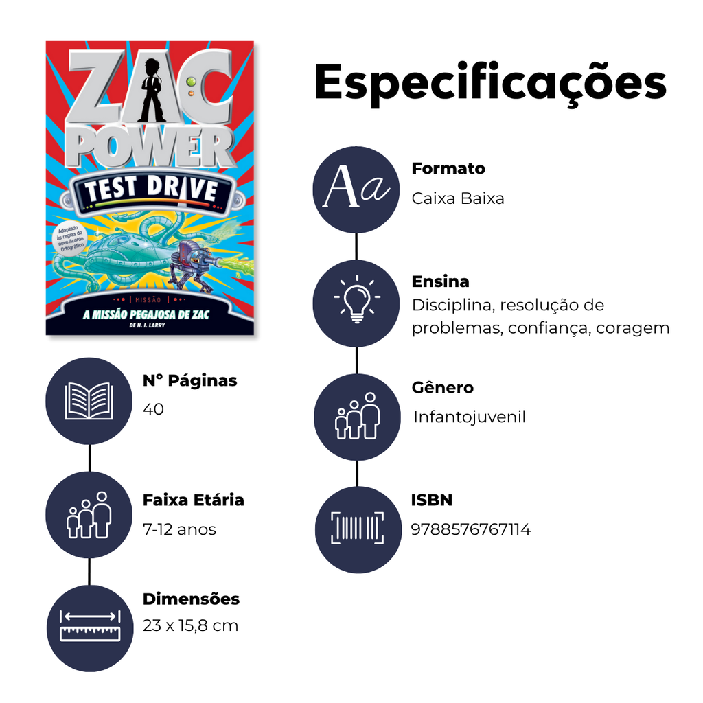 Com mais de 3 milhões de livros vendidos, Zac Power é a série perfeita para meninos a partir de 7 anos que adoram ação, mistério e aventura! Uma leitura envolvente que já conquistou crianças no mundo todo — e que promete afastar seu filho das telas, aproximando-o do universo dos livros.